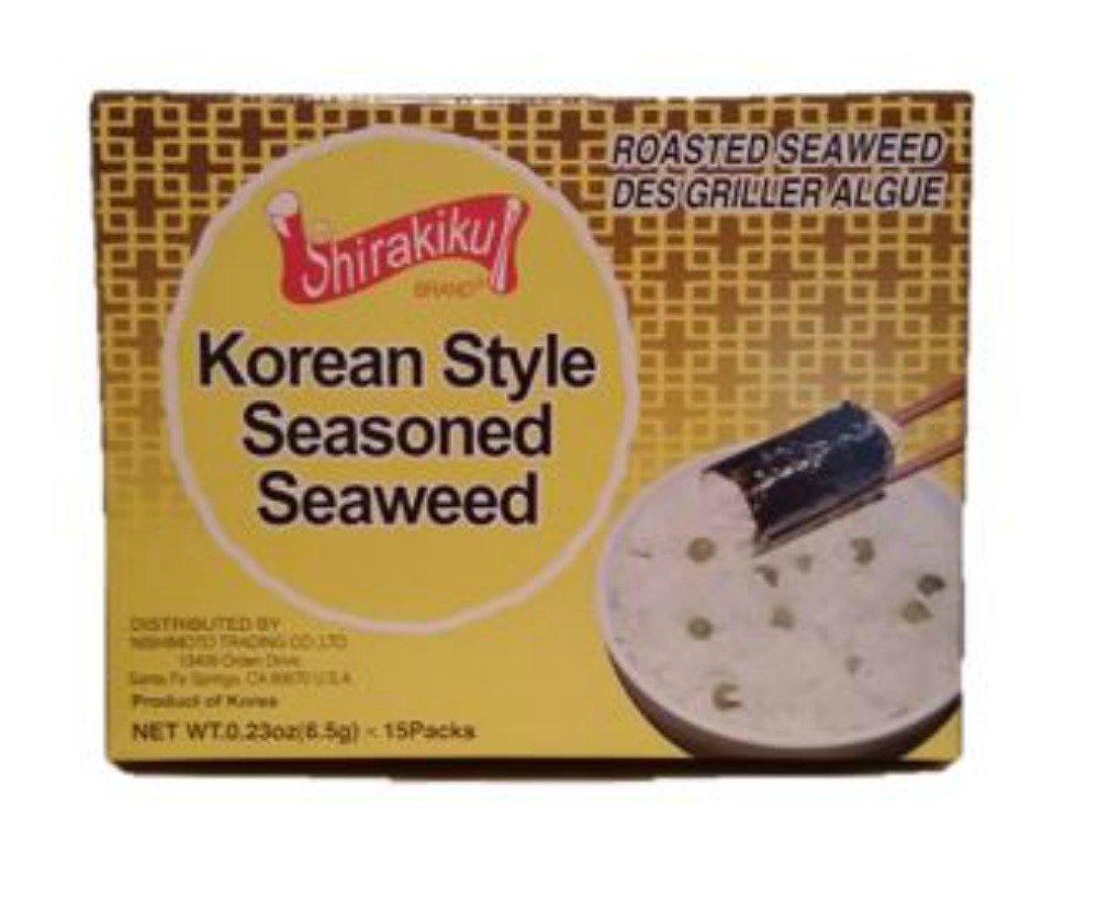 Korea Style Seasoned Seaweed Nori Sushi Musubi Wraps or Sheets Jumbo Box Shirakiku Korean Style Seasoned Seaweed Nori Box of 15 pack 23 oz x 15 Roasted Seaweed Wraps or Sheets Each sheet is approximately 25 inches by 35 inches Sushi or Musubi Nori wraps Shirakiku brand -. Shirakiku Korean Style Seasoned Seaweed Review Shirakiku Korean Style Seasoned Seaweed Feature Good for making sushi maki or roll Co. 15 1g Carbs.