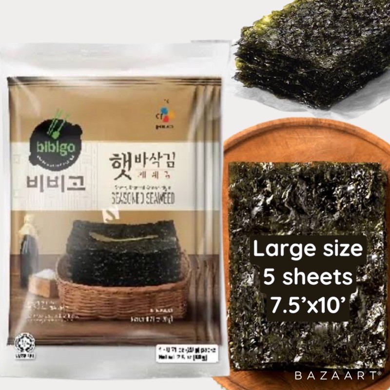 Cj Bibigo Seasoned Seaweed 5s Large Savory Roasted Korean Style Seaweed Best For Sushi Bake Shopee Philippines