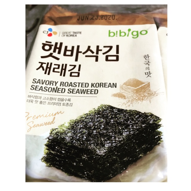 Bibigo savory roasted korean seasoned seaweed. Korean people enjoy seasoned gim with steamed rice as a side dish or beer such as snack. Want to use it in a meal plan. Gim-bugak is dried laver sheet coated with glutinous rice paste and then fried.