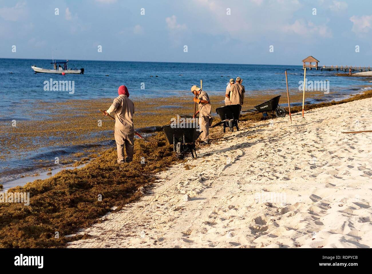 Riviera Maya Mexico July 27 2018 A Group Of Local Mexican Men Remove Sargassum Seaweed In The Gulf Of Mexico And The Caribbean On A Tropical Beac Stock Photo Alamy