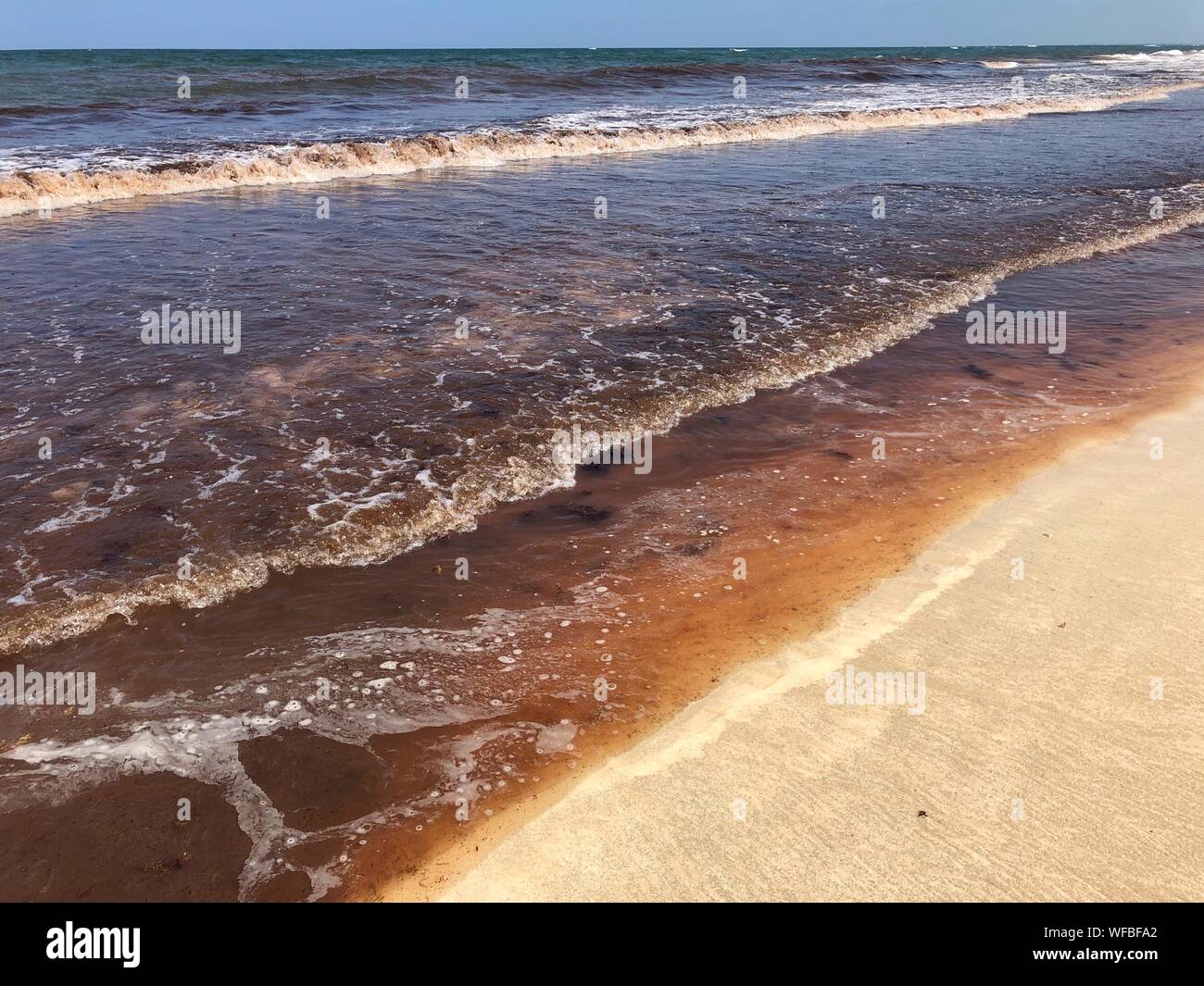 I read a couple reports online that this spring and summer it was pretty bad. Sargassum a seaweed-like algae washed ashore on a beach June 15 2019 in Tulum Mexico. Just back home from Tulum this morning 29 06 2019spent 2 weeks there lots of seaweed they are doing best to clean it up but fighting a loosing battle bahia principe.